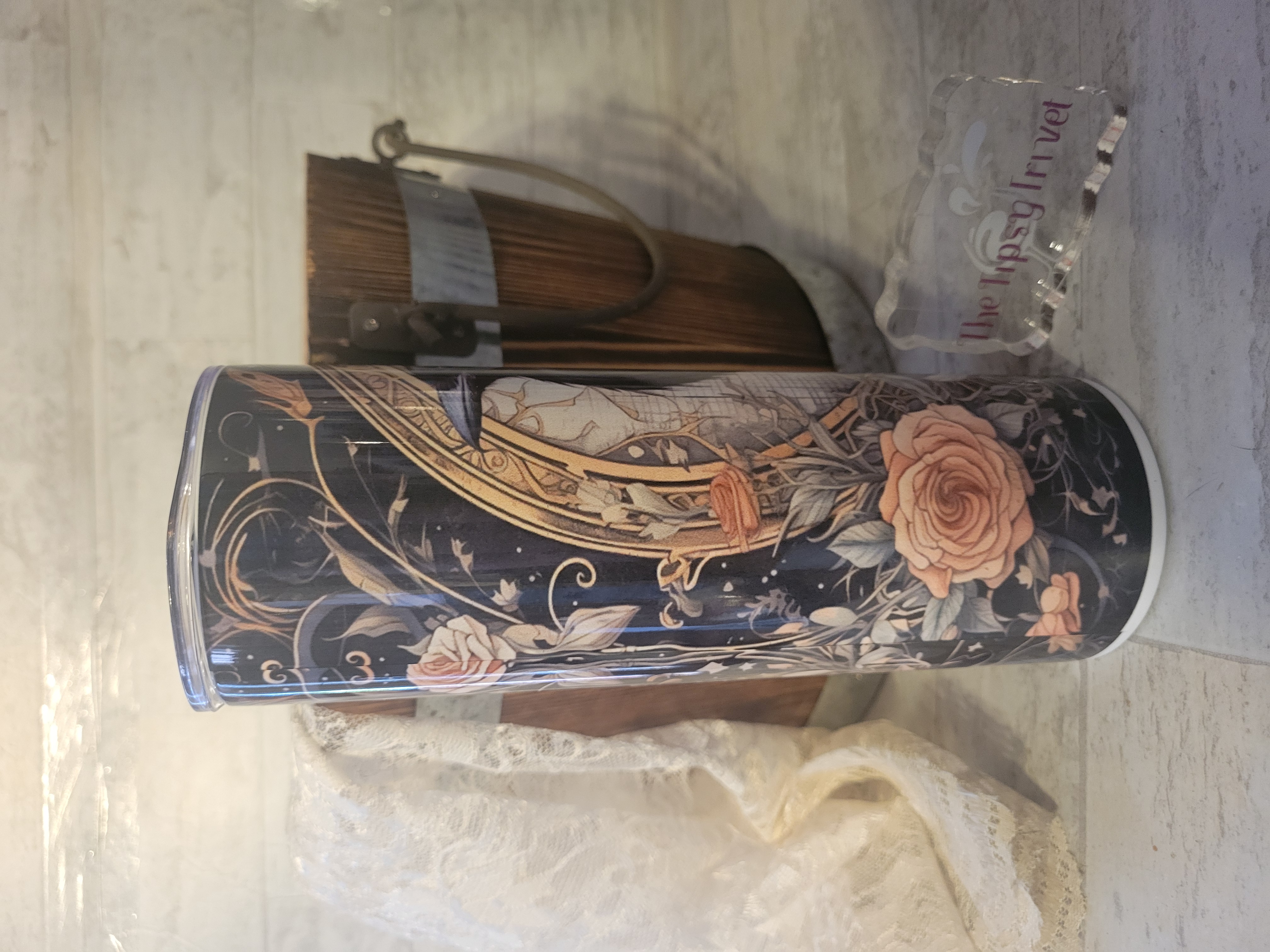 Elevate your drinkware collection with this stunning Raven Gothic Art Tumbler from The Tipsy Trivet. Featuring an intricately illustrated black raven perched among ornate golden accents and floral details, this tumbler exudes dark elegance and mysterious charm. The deep, rich tones and detailed design are set against a celestial background, perfect for lovers of gothic art, mythology, or ravens.