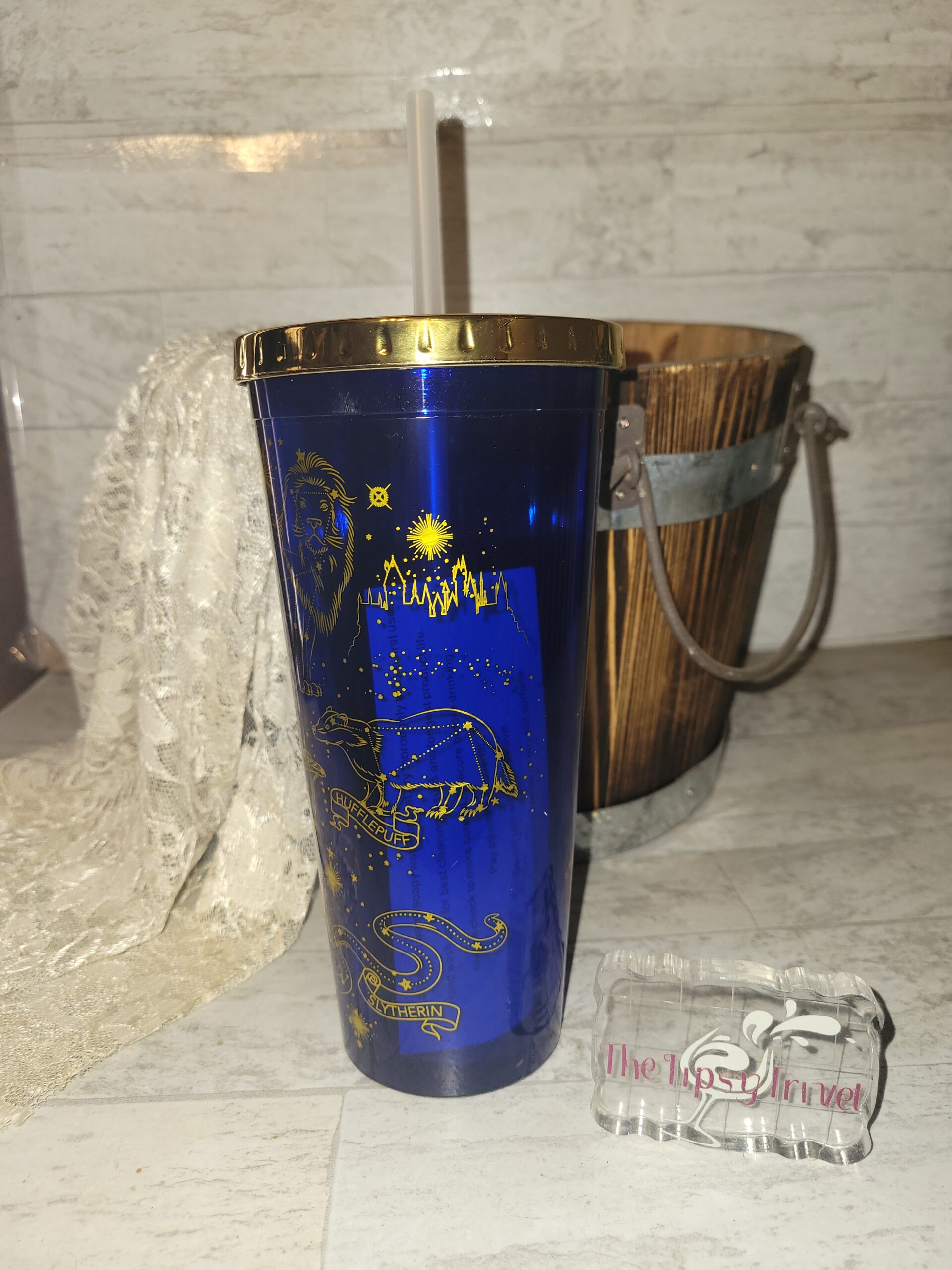 Step into the celestial side of the Wizarding World with this striking Harry Potter Houses Constellation Tumbler. This deep navy blue cup features the four iconic house mascots reimagined as golden star constellations, perfect for fans who love a touch of astronomy with their magic.